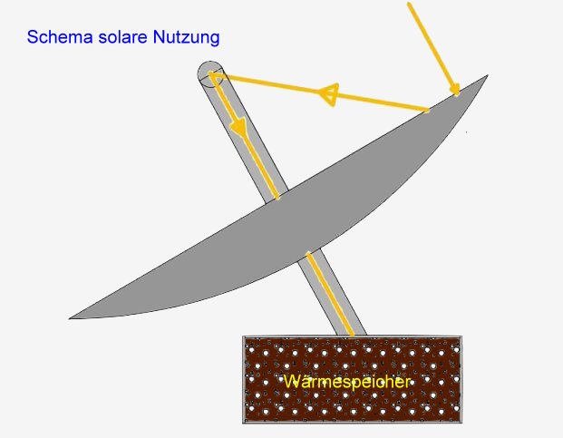 Einheiten, etwa mittels eines Parabolspiegels von 11m Durchmesser etwa 100 m² Fläche die Sonnenstrahlung gebündelt direkt in einen